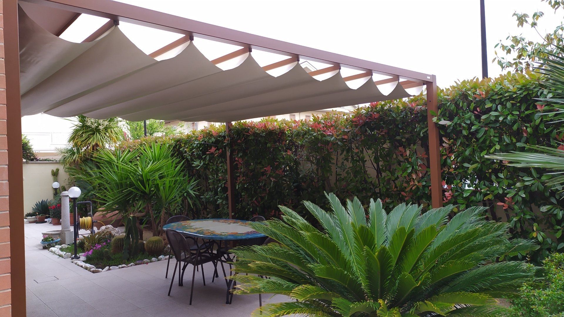 Puoi anche installare un sistema di apertura motorizzato, a batteria o collegato alla rete elettrica, e grazie alla domotica, gestire l'apertura e la chiusura della tenda da remoto!