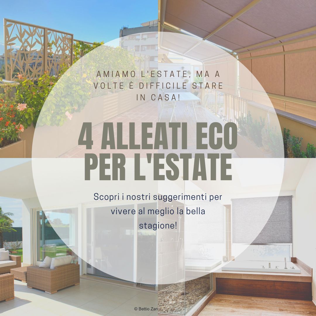 L'estate è arrivata e si mostra in tutta la sua bellezza! Le giornate si allungano e abbiamo la percezione di avere più tempo libero da dedicare alle attività che preferiamo, come andare al mare, fare lunghe passeggiate in collina, escursioni in montagna o semplicemente passare del tempo nella tranquillità della propria casa con la famiglia e gli amici tra cene, aperitivi e la ritrovata voglia di stare insieme . E' proprio in queste situazioni casalinghe che ci rendiamo conto di quanto sia difficile stare in casa e svolgere le normali attività quando fa molto caldo ! Abbiamo tanta voglia di invitare gli amici a cena, preparare qualcosa di buono da gustare chiacchierando allegramente ... poi accendiamo il forno ed i fornelli e l'entusiasmo scompare, sostituito dal caldo asfissiante che rende ogni gesto difficile e sofferto, e ti fermi a pensare " mannaggia a me e a quando mi è venuto in mente! " Non disperare, abbiamo alcuni suggerimenti per te! Pensare al nostro benessere quando siamo in casa , dovrebbe essere una priorità assoluta! Ma è importante anche tener conto dell'impatto che ha la ricerca di questo benessere sul nostro pianeta, ed è proprio per questo motivo che vorremmo suggerirti 4 alleati per vivere la casa d'estate che tengano conto delle nostre esigenze con un notevole risparmio energetico : Tende da Sole : la Tenda da Sole è il primo alleato per vivere al meglio gli spazi della propria casa, sia interni che esterni, soprattutto durante il periodo estivo. Grazie alla tenda infatti è possibile creare una schermatura ai raggi solari, che permette di abbassare notevolmente la temperatura percepita , sia nello spazio coperto che all'interno dell'abitazione. Clicca qui per scoprire tutti i vantaggi delle Tenda da Sole! Frangisole : questo prodotto innovativo dalle mille funzionalità e dal design unico, può diventare un alleato importante per la tua casa perché permette di creare zone d'ombra , regolando il flusso di luce che entra nello spazio circostante. Non ci credi? Visita la pagina dedicata a questo prodotto, cliccando qui Tenda da Interno: come può una tenda aiutarti a filtrare la luce del sole in casa? Scegliendo il tessuto apposito, sarà una soluzione perfetta per abbassare il livello di calore che entra in casa! E infatti anche per la tenda da interno è possibile usufruire dell' Ecobonus , utilizzando tessuti creati appositamente e classificati come " schermatura solare ". Clicca qui per maggiori informazioni! Zanzariera : ultima della lista ma non per importanza, la zanzariera è fondamentale per vivere al meglio la propria casa durante la bella stagione! Grazie alla zanzariera potrai aprire le finestre in totale sicurezza , evitando l'ingresso di insetti e sporcizia e favorendo il ricircolo dell'aria in tutta la casa. Scopri tutti i vantaggi delle zanzariere cliccando qui Questi sono i 4 alleati per vivere al meglio la propria casa con un notevole risparmio energetico e senza danneggiare l'ambiente!! Pensiamo al nostro benessere, proteggendo il pianeta perché ogni piccolo gesto è fondamentale!